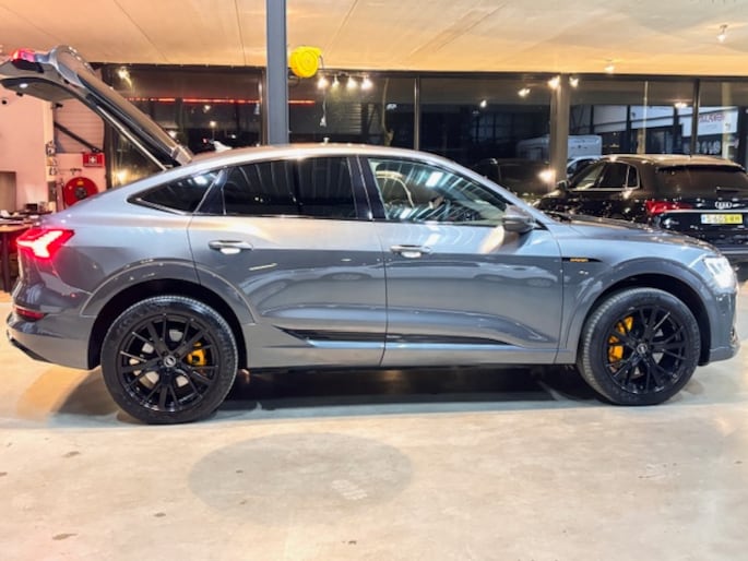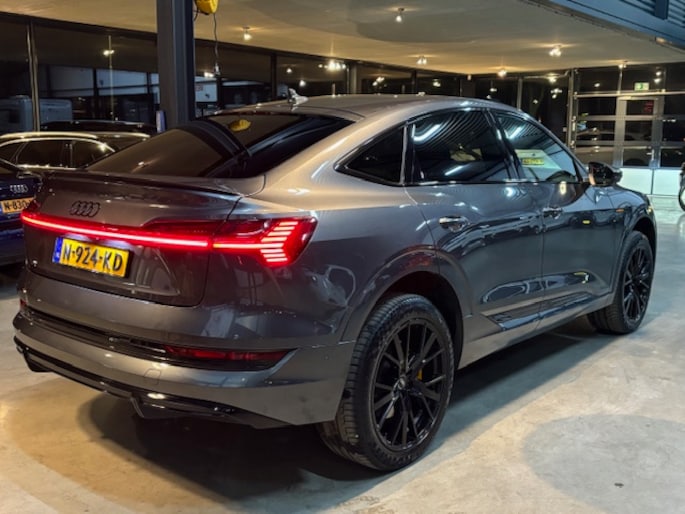 AUDI heeft de auto opnieuw uitgevonden. De volledig elektrische AUDI E-Tron Sportback is duurzaam, maar biedt tegelijk veel rijcomfort en geweldige prestaties. Ervaar de kracht en stilte van de elektromotor tijdens het rijden. Niks mis met gewone stalen vering natuurlijk, maar de luchtvering in deze auto geeft toch wel een paar onderscheidende extra's als het gaat om veiligheid, gemak en wegligging. Het lederen sport interieur zorgt voor een klasse uitstraling. De elektrische achterklep opent met een druk op de knop, zodat u gemakkelijk toegang heeft tot de bagageruimte.