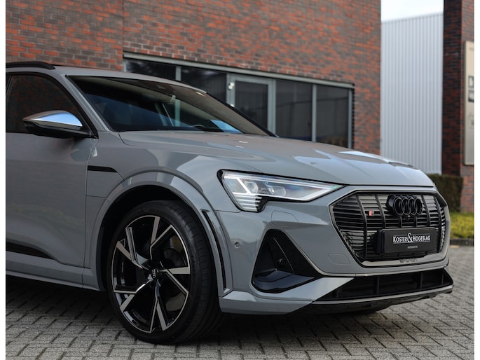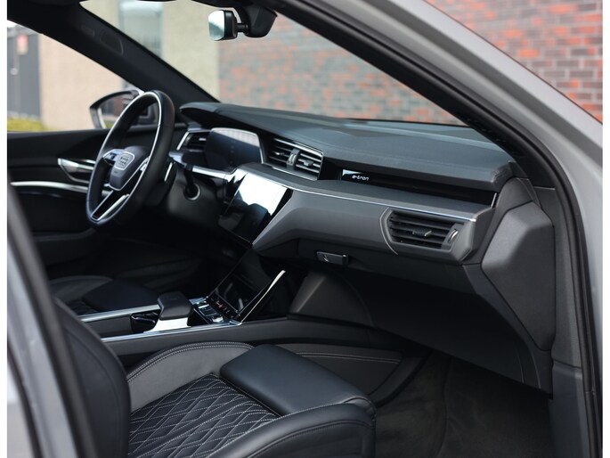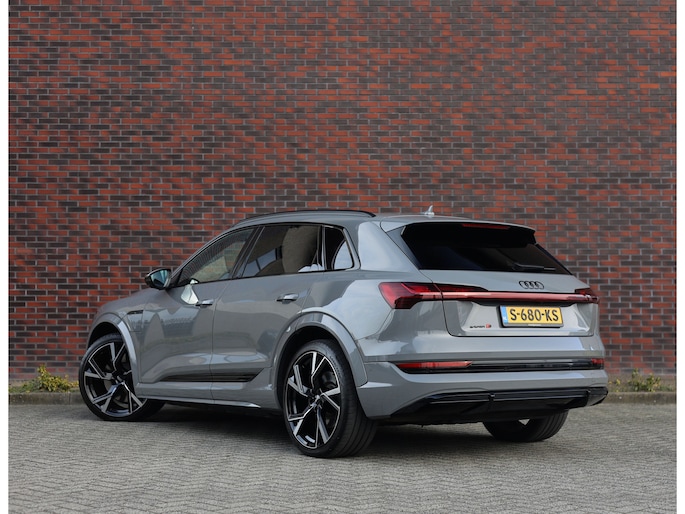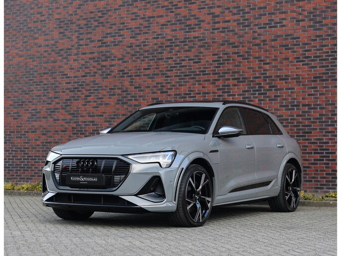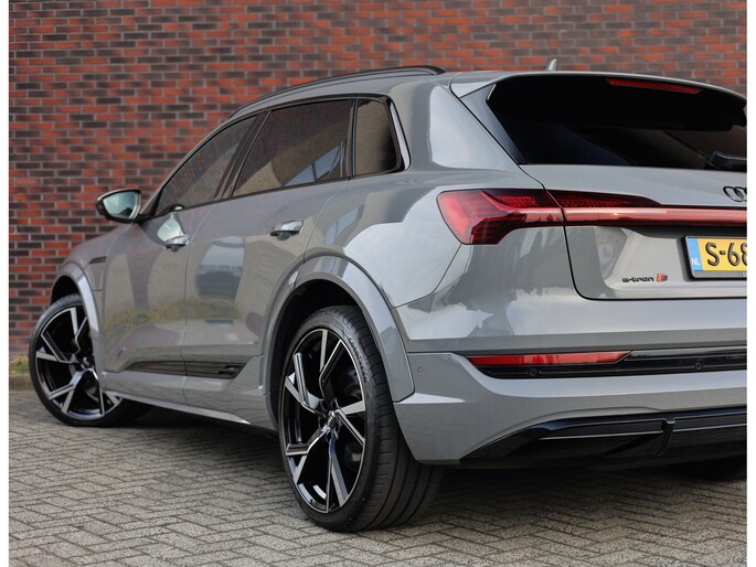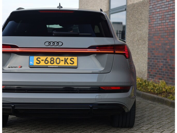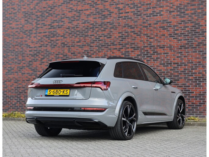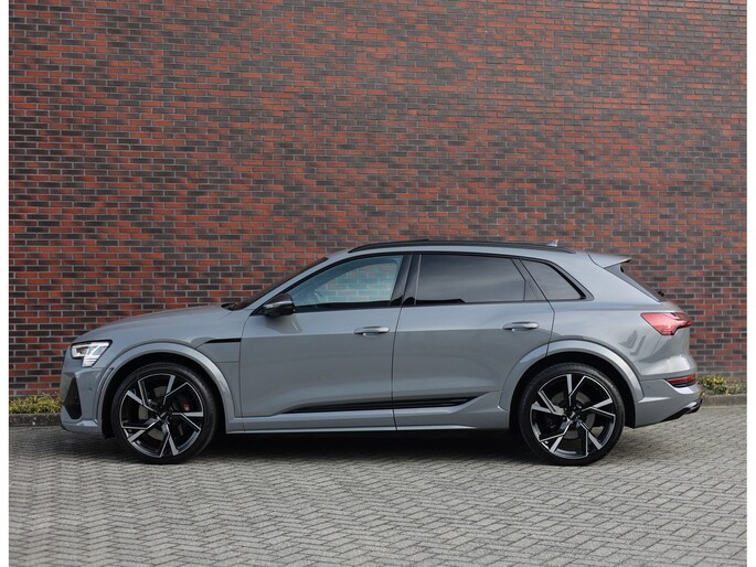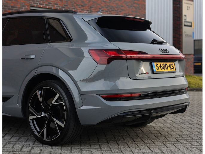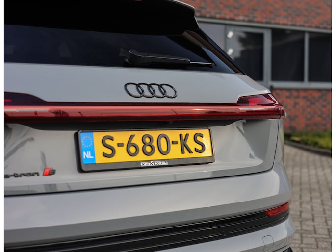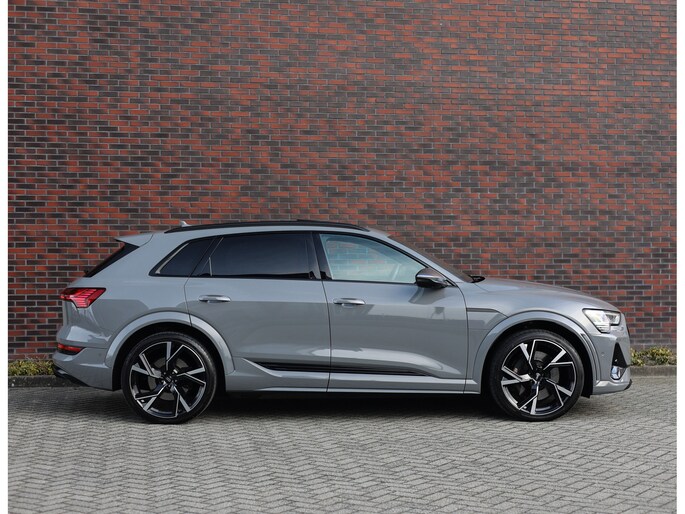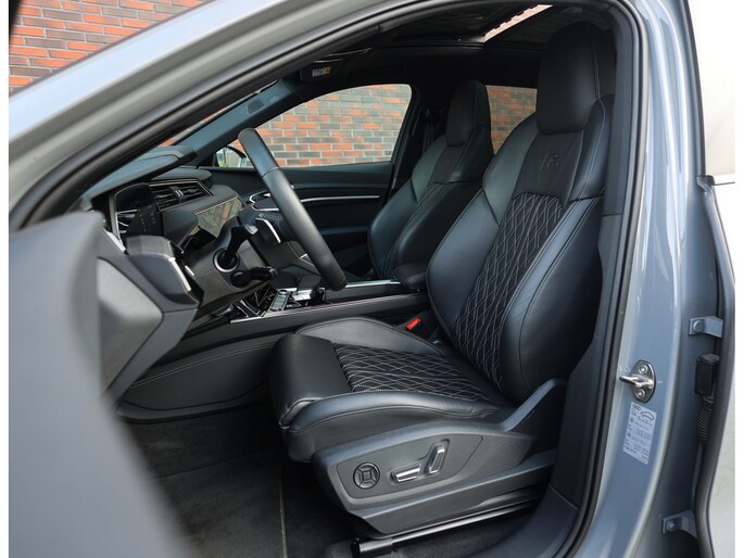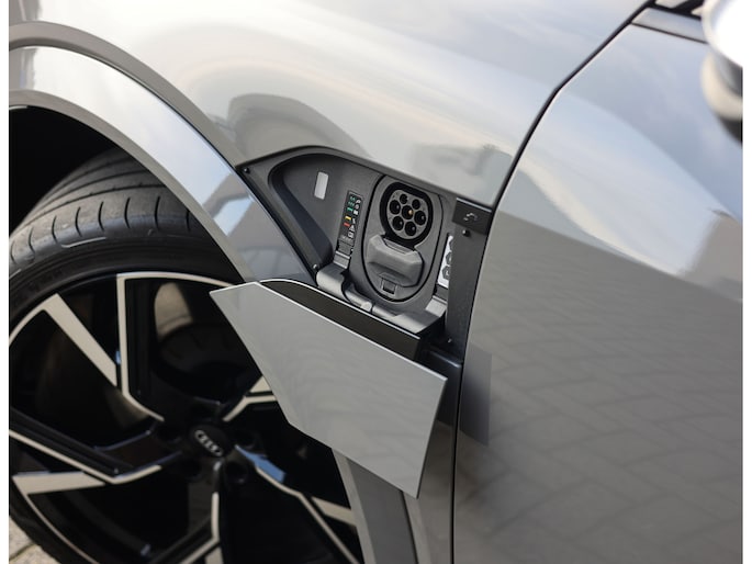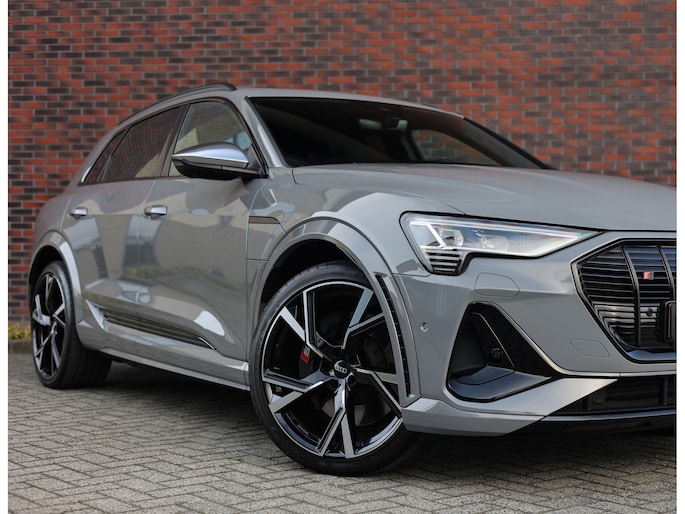 Prachtige Audi E-tron S Quattro! Het Nardo grijze lakwerk is toch wel één van de betere kleuren voor deze Audi. Daarnaast is het “S” zijn ook terug te zien aan de diverse elementen in het interieur, zoals de S sportstoelen en de opdruk op de versnellingspook. Met als resultaat dat hier een sportief ogende Audi staat!