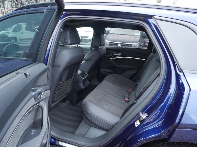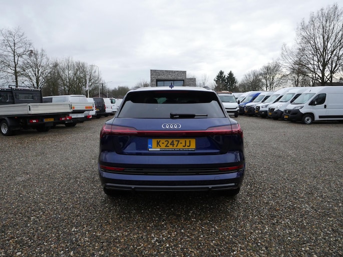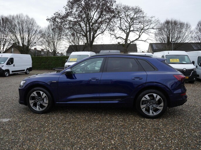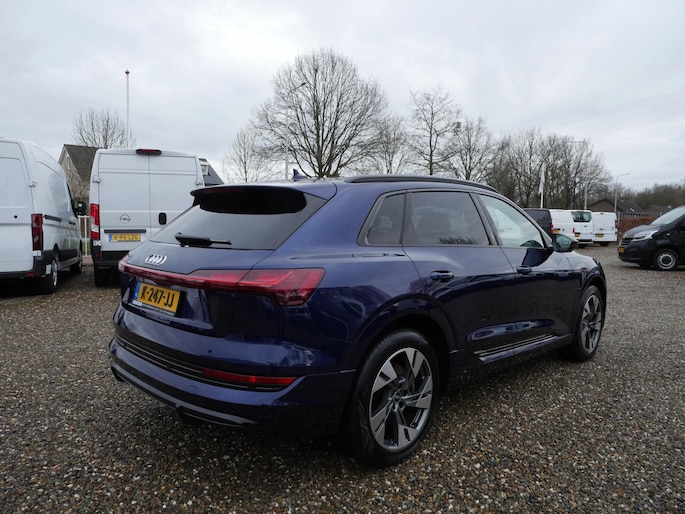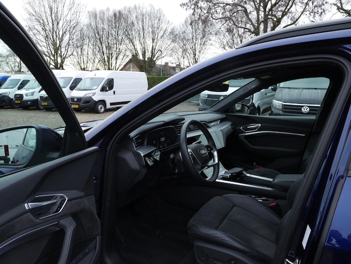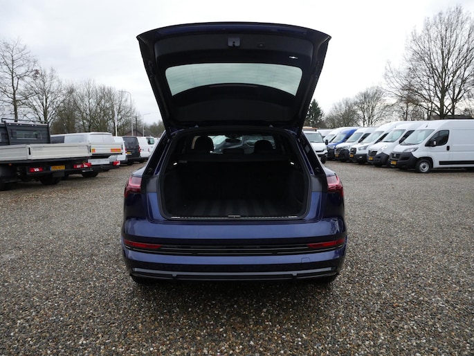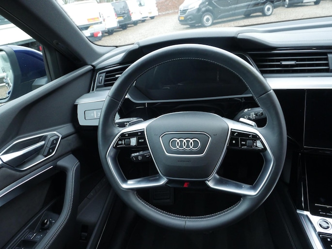 Efficiënte techniek en ongekende dynamiek. Het plezier van elektrisch rijden gaat in deze Audi e-tron samen met een spaarzaam stroomverbruik. De elektromotor laat u geluidloos over de weg gaan. Wat een verademing, en zoveel power ook nog! De S-Line styling van deze auto is zowel smaakmakend als spraakmakend. Perfecte rij-ervaring? Dat is voor een groot deel te danken aan het gemak en de eigenschappen van de luchtvering. 's Winters op pad gaan kan een behoorlijke uitdaging zijn. Daarom is deze Audi e-tron voorzien van weldadige verwarmbare voorstoelen. Goeie looks? Jazeker! Maar de sportstoelen zorgen ook voor een goed gesteunde en comfortabele zit. Volop licht en ruimtelijk gevoel geeft het elektrische bediende glazen panoramadak. De elektrisch bedienbare achterklep opent met een druk op de knop. De verlichting van de koplampen geeft het gevoel dat het altijd dag is. De slimme matrix LED-technologie past zich aan bij tegenliggers, zonder verlies van lichtkwaliteit. Ook is de auto voorzien van: 20 inch lichtmetalen velgen, adaptief dempingsysteem, warmtewerend glas, in delen neerklapbare achterbank, LED-achterlichten en verstelbare lendensteunen.
