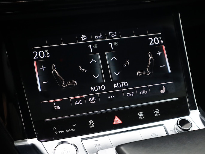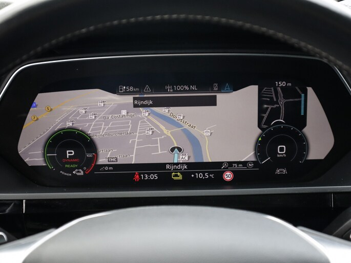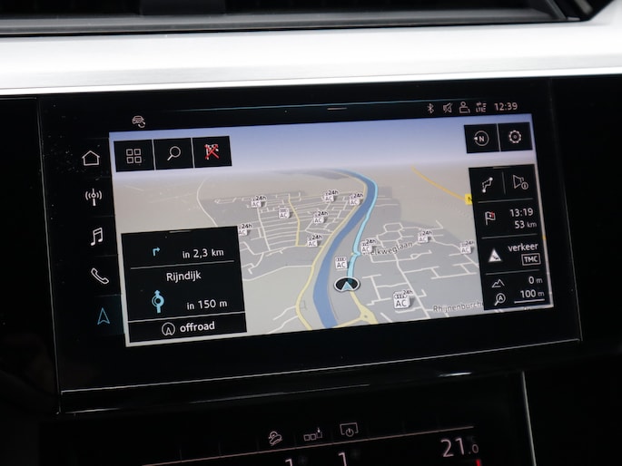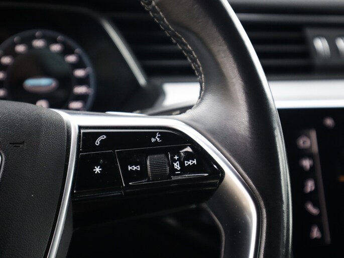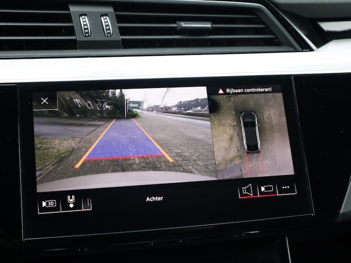 Zoals u mag verwachten van deze Audi e-tron Sportback is hij uitgerust met een reeks aan actieve veiligheidssystemen. Het Lane-keeping systeem garandeert dat u zich niet onverhoeds buiten de lijnen van de rijstrook begeeft. De forward collision warning geeft een botswaarschuwing als een aanrijding dreigt met een voorligger.
