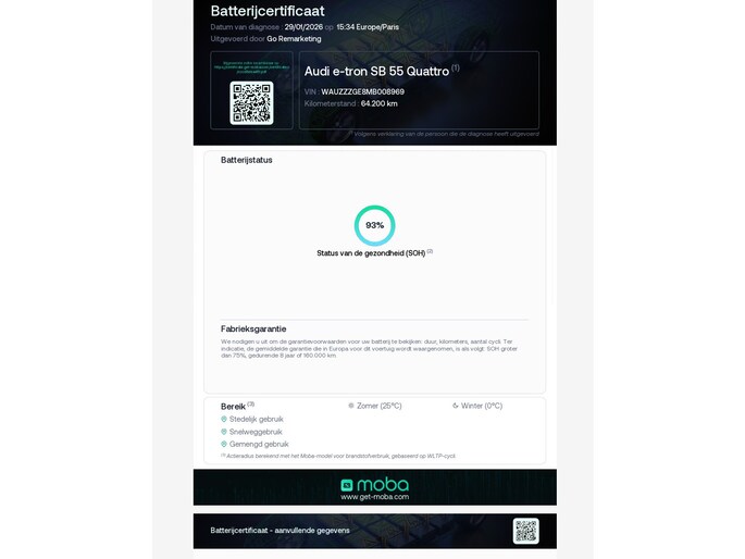 55 quattro edition 95 kWh Navi / Clima / PDC / Luchtvering / SOH 93 %