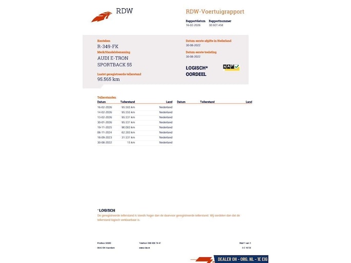 Kilometerstand gecontroleerd