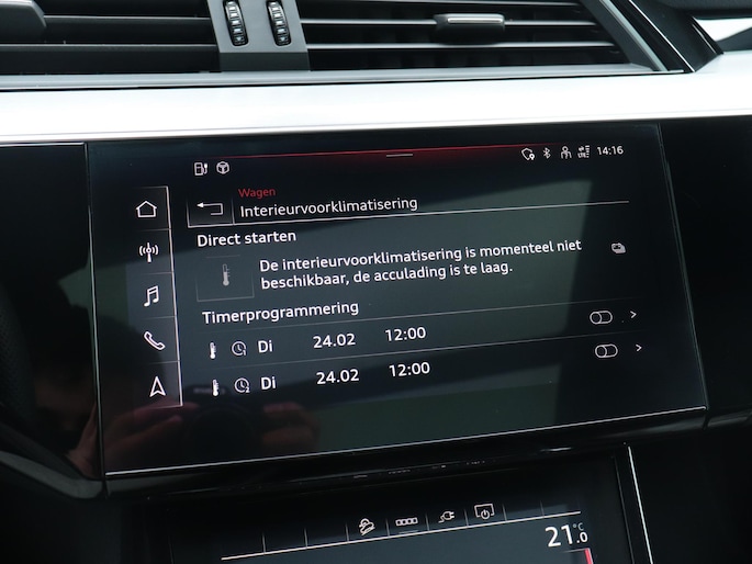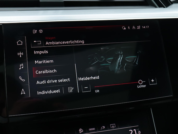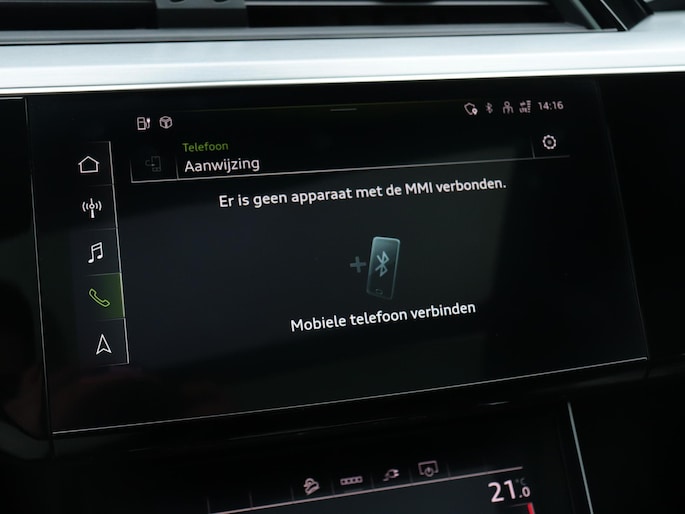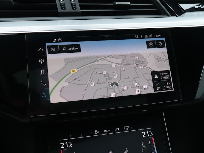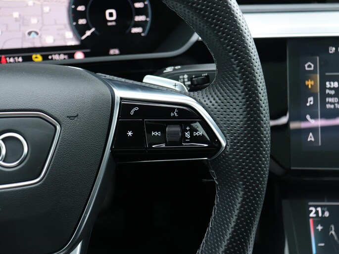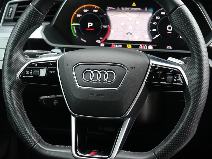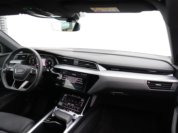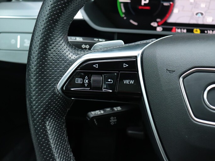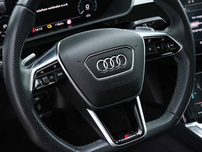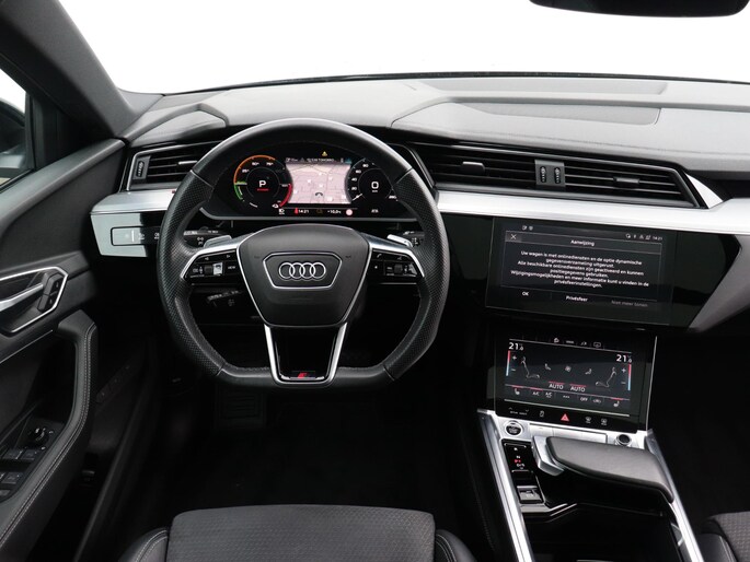 Het digitale dashboard geeft een nauwkeurig en makkelijk overzicht van alle belangrijke functies. Het gebruik van de 360 graden camera op deze auto zorgt voor een groter gezichtsveld en helpt de dode hoeken te elimineren. Adaptive cruise control houdt de ingestelde snelheid vast en houdt afstand tot het voertuig voor je. Na een lange werkdag in de file: daar zit niemand op te wachten. Gelukkig helpt de file assistent een handje. Het radarsysteem meet de ruimte tot de voorligger en bewaakt de juiste afstand. Stilstaan? Dan remt en stopt de auto vanzelf. Deze Audi e-tron Sportback is 'connected'. Belangrijke functies worden permanent gemeten en zijn uit te lezen via een speciale app, ook op afstand. Ook dashboard met spraakbediening, full map navigatiesysteem, kruisend verkeer detectie, electronic climate control, sportstuur met schakelpaddels en DAB ontvangst horen tot de voorzieningen op deze auto.