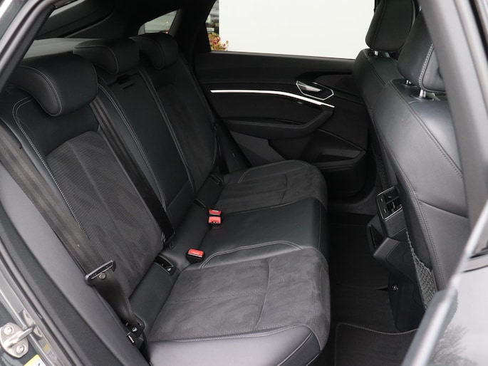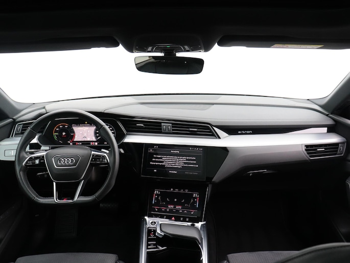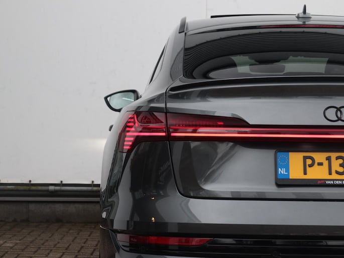 Deze Audi e-tron Sportback is innovatie op zijn best. Hij is ontworpen als een unieke combinatie van rijplezier en zorg voor het milieu. Dankzij de automatische transmissie en elektrische aandrijving, navigeer je gemakkelijk door het verkeer. De verschillende elementen van de S-Line styling accentueren de dynamische lijnvoering van deze e-tron Sportback. Op koude dagen voel jij je snel behaaglijk op de verwarmbare stoelen. Ongeacht de lading en het aantal passagiers: de rijhoogte is dankzij de luchtvering altijd constant. De elektrisch bedienbare achterklep opent met een druk op de knop. De verlichting van de koplampen geeft het gevoel dat het altijd dag is. De slimme matrix LED-technologie past zich aan bij tegenliggers, zonder verlies van lichtkwaliteit. Bij de uitrusting van deze auto horen onder meer 21 inch lichtmetalen velgen, halflederen bekleding, adaptief dempingsysteem, warmtewerend glas, in delen neerklapbare achterbank en LED-achterlichten.