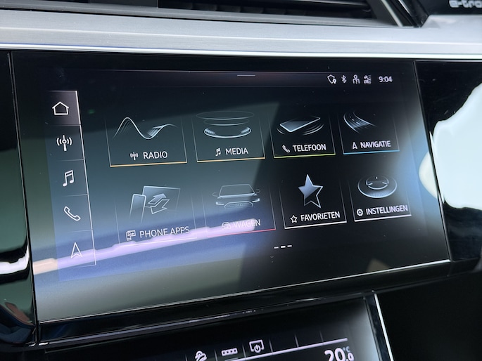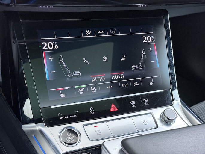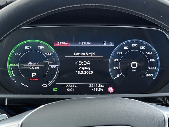 55 Quattro S-Line 408pk 95kWh Pano-Schuif-Dak LED Sport-Stoel-Leer/Alcantara Luchtvering 21" Trekhaak Adaptive-Cruise Spoor-Assist Navi Park-Assist PDC-a+v Ecc Edition SOH 89% Rode-Remklauwen Zwarte-Hemel Audi-Smartphone-Interface Stoelverwarming Memory Elek.Achterklep DAB Lmv Privacy Glas Led Keyless Actieve Luidspreker 1e Eigenaar Origineel Nederlandse Auto € 93.000 nieuw 1.800kg Trekvermogen