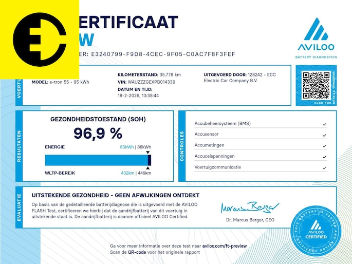 55 quattro Advanced edition 95 kWh | SOH 96,9% | Stoelverwarming | Leren bekleding | Incl.BTW