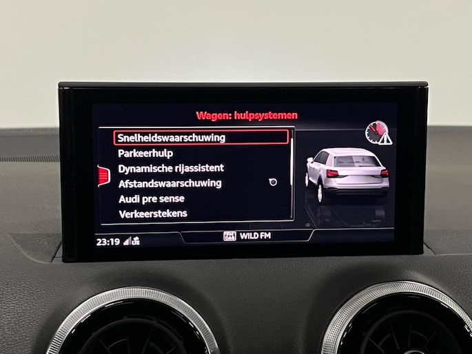 Pragmatisch en veilig als deze auto is, beschikt hij over diverse veiligheidssystemen. Een belangrijke bijdrage aan de veiligheid onderweg levert de verkeersbord-detectie in deze Audi. Het Lane-keeping systeem zorgt voor een automatisch constante positie binnen de rijstrook. Afdwalen is uitgesloten. Het systeem van forward collision warning, of in gewoon Nederlands 'botswaarschuwing', treedt in werking als de sensor te weinig afstand signaleert met een voor- of tegenligger. Ook helpen het accident avoidance system, hill hold functie, brake assist en bandenspanningcontrolesysteem, uw rit tot een veilige rit te maken.