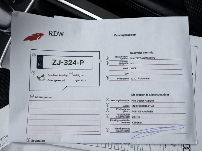 Kilometerstand gecontroleerd
