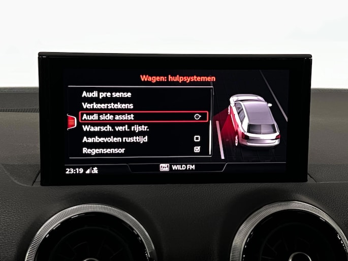Pragmatisch en veilig als deze auto is, beschikt hij over diverse veiligheidssystemen. Een belangrijke bijdrage aan de veiligheid onderweg levert de verkeersbord-detectie in deze Audi. Het Lane-keeping systeem zorgt voor een automatisch constante positie binnen de rijstrook. Afdwalen is uitgesloten. Het systeem van forward collision warning, of in gewoon Nederlands 'botswaarschuwing', treedt in werking als de sensor te weinig afstand signaleert met een voor- of tegenligger. Ook helpen het accident avoidance system, hill hold functie, brake assist en bandenspanningcontrolesysteem, uw rit tot een veilige rit te maken.