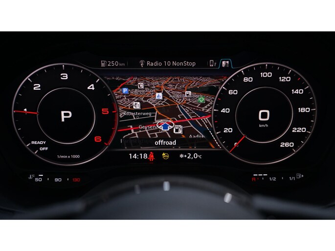 Via het digitale dashboard bent u permanent op de hoogte van alle informatie die u nodig heeft voor een veilige rit. De achteruitrijcamera levert eersteklas parkeerservice. U weet precies hoeveel ruimte u nog heeft, in beeld en geluid. Ingericht op Connected Services, voor een nog veiligere en comfortabelere rit. Een goede veiligheidsvoorziening is de stuurbediening voor belangrijke functies. De auto is natuurlijk voorzien van een full map navigatiesysteem en het audio-installatiesysteem biedt glasheldere geluidskwaliteit dankzij DAB-ontvangst. Smartphones die zonder snoer kunnen opladen halen simpel een volle accu via de draadloze oplaadmogelijkheid voor telefoons. Deze Audi is voorzien van automatische airconditioning, lederen sportstuur, regensensor, cruise control, automatisch dimmende buitenspiegels en centrale deurvergrendeling met afstandsbediening.