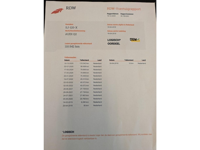 Kilometerstand gecontroleerd