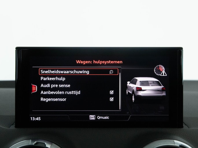Zoals je van zo'n jonge auto mag verwachten, zijn hier ook de geavanceerde remote services aanwezig. Simpelweg met een app op uw smartphone controleer je op afstand de status van de auto en bedien je diverse functies. In deze Q2 vind jij schakelaars op het stuur om het audio-installatiesysteem met dab-ontvangst te bedienen. Tot de standaard uitrusting van deze auto hoort ook automatische airconditioning. Ervaar het comfort van inparkeren met parkeersensoren. Deze auto laat zich moeiteloos in elk parkeervak manoeuvreren. Het drukke verkeer eist onderweg al jouw aandacht op. Daarom is het goed dat deze Audi is voorzien van diverse systemen die je assisteren tijdens de rit. Een automatisch inschakelbare verlichting neemt het waar als het donker wordt of gaat schemeren, en schakelt dan automatisch de verlichting in. Op dezelfde manier "ziet" de regensensor de eerste spatjes regen en schakelt dan de ruitenwissers in, en als het harder gaat regenen zet hij de ruitenwissers ook in een snellere stand. Deze auto is voorzien van lederen sportstuur, cruise control, automatisch dimmende buitenspiegels, centrale deurvergrendeling met afstandsbediening en boordcomputer.