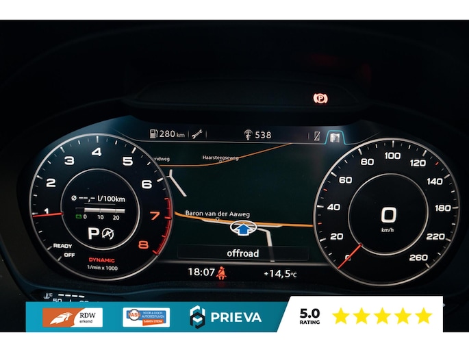 Het volledig digitale Virtual Cockpit instrumentarium geeft alle rij-informatie overzichtelijk weer. Met de achteruitrijcamera parkeert u eenvoudig en veilig. Verder is deze Audi uitgerust met: