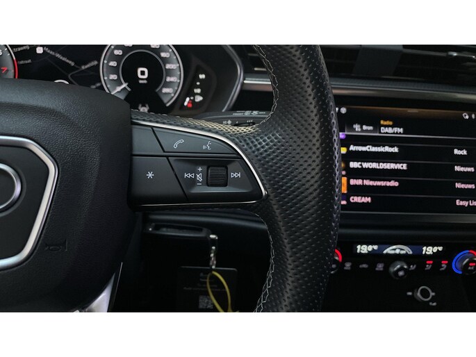 Je wordt geïntroduceerd tot de digitale wereld van mobiliteit waarop alles wat jij wenst wordt geprojecteerd op het digitale dashboard. De achteruitrijcamera geeft je duidelijk zicht op de ruimte achter de auto. Deze Audi Q3 is 'connected'. Belangrijke functies worden permanent gemeten en zijn uit te lezen via een speciale app, ook op afstand. Deze Audi is voorzien van knoppen op het stuur om het navigatiesysteem met harde schijf en het audio-installatiesysteem met DAB-ontvangst te bedienen. Tot de standaard uitrusting van deze auto hoort ook electronic climate control. Ook is de Audi uitgerust met: lederen sportstuur, regensensor, cruise control en centrale deurvergrendeling met afstandsbediening.