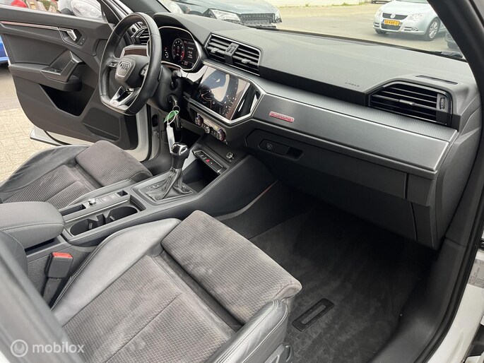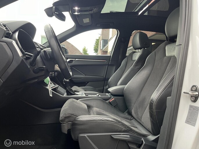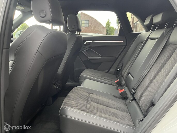 Hij is stijlvol en comfortabel, deze Audi Q3, en hij is ontworpen om u veilig en comfortabel te laten rijden onder alle omstandigheden. Hij heeft een benzinemotor en een automatische transmissie. Het gevoel van luxe is inbegrepen dankzij het lederen interieur. Ga samen met uw bijrijder lekker zitten in de verwarmbare voorstoelen. Ziet er goed uit, die sportstoelen. Maar waar het om gaat, is de solide zit onder alle omstandigheden. Voel die ruimte eens! Lekker veel licht door het elektrisch bediende glazen panoramadak. De bagageruimte is toegankelijk via een comfortverhogende elektrische achterklep. De verlichting van de koplampen geeft het gevoel dat het altijd dag is. De slimme matrix LED-technologie past zich aan bij tegenliggers, zonder verlies van lichtkwaliteit. Bij de uitrusting van deze auto horen onder meer 19 inch lichtmetalen velgen, warmtewerend glas, in delen neerklapbare achterbank en LED-achterlichten.