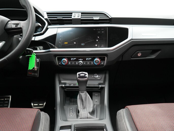 Snelheid, omgevingsinfo, navigatie en communicatie... Het digitale dashboard geeft alles realtime weer. Oliepeil, bandenspanning, sloten en andere functies zijn via een speciale app overal te checken dankzij Connected Services. Met de knoppen op het stuur regelt u het audio-installatiesysteem en het navigatiesysteem met harde schijf, terwijl u uw blik op de weg gericht houdt. De audio-installatie biedt daarbij glasheldere ontvangst dankzij DAB-ontvangst. Het comfort wordt verhoogd door de aanwezige electronic climate control. Boem is ho? Niet bij deze Audi Q3 Sportback. De piepjes van de parkeersensoren waarschuwen u op tijd voor obstakels. U bent in deze Audi ook voorzien van WIFI-hotspot, lederen sportstuur, regensensor, cruise control en centrale deurvergrendeling met afstandsbediening.