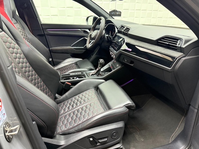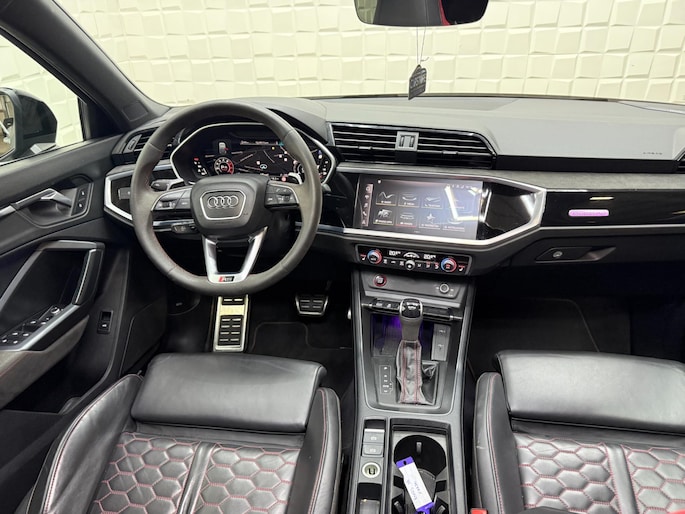 Gebouwd voor vele jaren rijplezier waarbij comfort en veiligheid op de eerste plaats staan, dat is deze typisch Duitse Audi RSQ3 Sportback. Omdat het oog ook wat wil, is de S-Line styling een heel aantrekkelijke plus. De automatische transmissie en de vijfcilinder motor maken het autorijden snel en comfortabel. De vierwielaandrijving maakt van deze auto een echte krachtpatser met een formidabele trekkracht. Van binnen lijkt het allemaal uitermate ruim dankzij de vrije inval van daglicht via het elektrisch bediende glazen panorama dak. Comfort en luxe? Dat krijgt u door het lederen interieur. En optimaal gemak is er in de vorm van de elektrisch bedienbare achterklep. In de winter wordt het echt genieten met de stoelverwarming. De verlichting van de koplampen geeft het gevoel dat het altijd dag is. De slimme matrix LED-technologie past zich aan bij tegenliggers, zonder verlies van lichtkwaliteit. Ook 21 inch lichtmetalen velgen, warmtewerend glas, in delen neerklapbare achterbank, LED-achterlichten, verstelbare lendensteunen en variabele stuurbekrachtiging zijn aan boord.