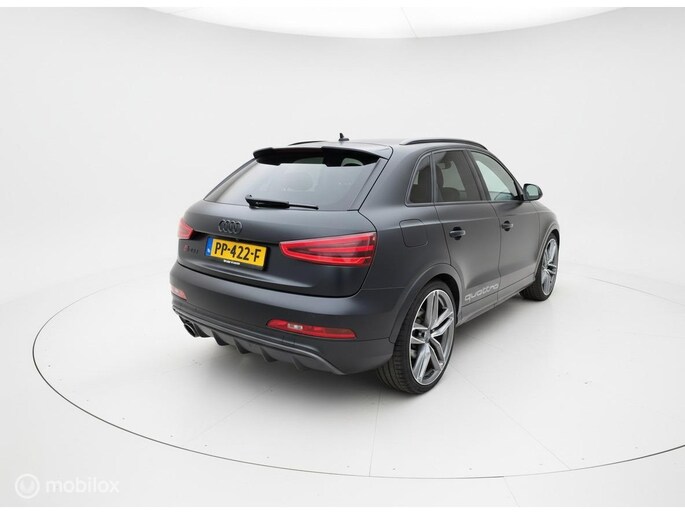 Alle technologie in de Audi RS Q3 is er op gericht om uw rit veilig en gemakkelijk te laten verlopen. Dit mooie exemplaar komt uit 2014. Deze auto wíl gewoon gezien worden: kijk maar naar de sportieve S-Line styling. In deze auto vindt u een benzinemotor en een automatische transmissie. Houdt u van een stijlvolle uitvoering? Dan zal het lederen interieur u zeker bevallen. Koude start? Niet met de verwarmbare voorstoelen! Laat die bochten maar komen! In de sportstoelen zitten u en uw bijrijder altijd goed! Dankzij de xenonverlichting profiteert u in het donker van een krachtige en heldere lichtbundel. Bij de uitrusting van deze auto horen onder meer sportonderstel, adaptief dempingsysteem, getint glas en in delen neerklapbare achterbank.