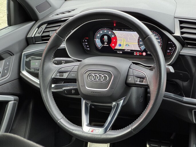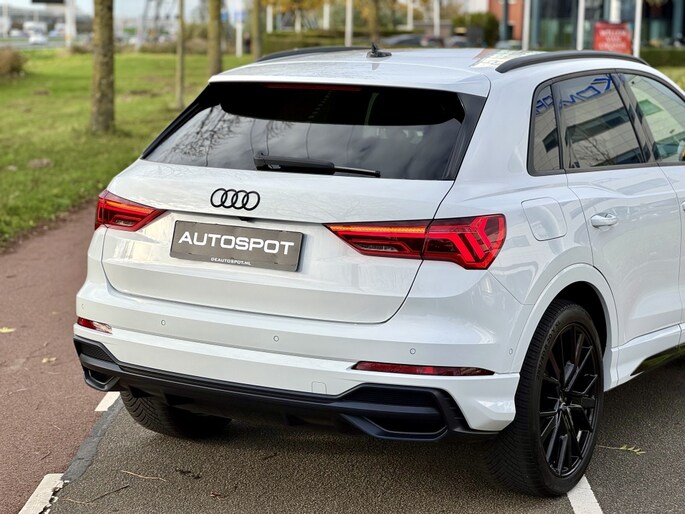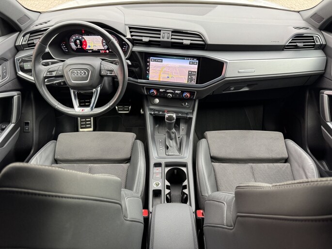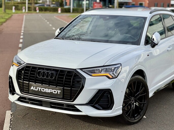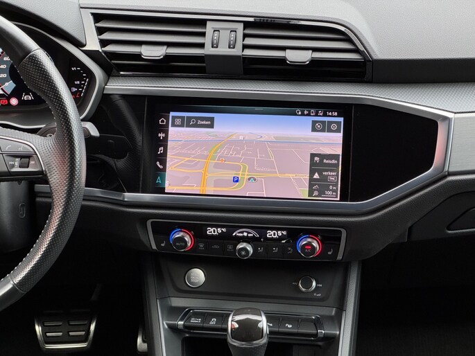 Audi Q3 35 Tfsi e 150 Pk 2x S-Line S-Tronic 05-2019 met slechts 64Dkm Gletjer Wit Metallic Alle Opties: Matrix Koplampen Navigatie MMI Plus Leder/Alcantara Elektrisch Verstelbare Sportstoelen S-Line Sportstuur ACC Adaptieve Control Lane Assist Dodehoek Assistent Blind Spot Drive Select Instelbaar Ambiance Verlichting Achteruitrij Camera Parkeer Assistent Parkeersensoren V+A Climate Control Standkachel Interieurverwarming 3 Zone S-Line Interieur/Exterieur Pakket Stoelverwarming Zwarte Hemel Telefoon Lader Bluetooth Telefoon Radio DAB Ontvanger Elektrisch Inklapbare Trekhaak Spiegels Elektrisch Inklapbaar Lederen Int Delen Elektrische Achterklep Dynamische Achterlichten (zandlopers) 20 Inch Audi Sport Velgen