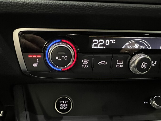 Het digitale dashboard vertelt u alles wat u wilt weten voor een slimme, comfortabele en veilige rit. Met adaptive cruise control houdt de auto zelfstandig afstand tot uw voorligger. Een veiligheidsverhogende optie waarmee u comfortabel onderweg bent. Communiceren met uw auto? Dat gaat via remote services. Met uw smartphone maakt u waar dan ook contact om allerlei functies te checken of te activeren. Terwijl het navigatiesysteem de ideale route voor u uitstippelt, geniet u van de kwaliteit van het audio-installatiesysteem met DAB-ontvangst. De bediening is bovendien gemakkelijk via knoppen op het stuur. Bij de luxe van deze auto hoort ook automatische airconditioning. Ook is de Audi uitgerust met: WIFI-hotspot, parkeersensoren voor en achter, regensensor, sportstuurwiel, keyless entry en automatisch dimmende binnenspiegel.