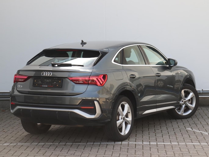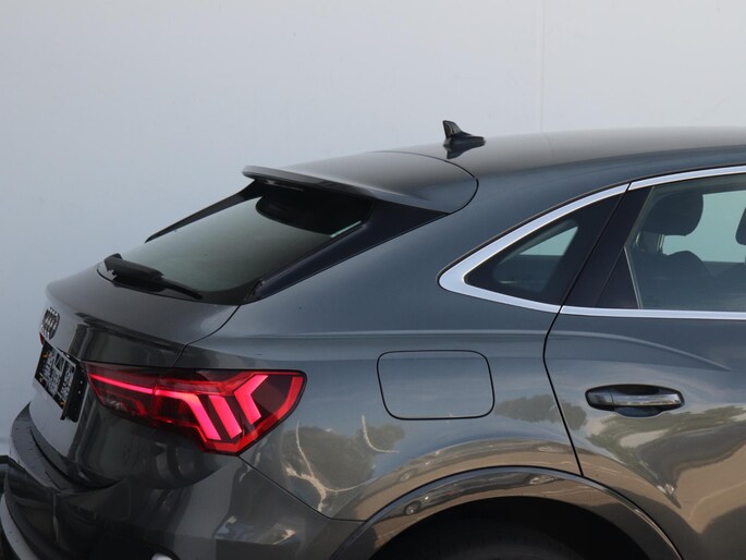 Het stijlvolle design van deze auto, de elegante contouren, zijn onmiskenbare rijcomfort en zijn krachtige motor maken van deze Audi Q3 Sportback een auto die je met trots zult bezitten. De S-Line styling geeft dit model een elegante en opvallende uitstraling. Met deze hybride Audi Q3 Sportback bent u niet voor één gat te vangen. U kunt kiezen voor elektrisch rijden of benzine. Met de voordelen van allebei. Opvallend zijn de stoere sportstoelen, die zorgen voor een onwrikbare zit in de scherpe bochten. Een handige voorziening op deze auto is de elektrische achterklep die je op afstand kunt openen. Bij de rijke uitrusting horen ook 18 inch lichtmetalen velgen, Full LED koplampen, warmtewerend glas, in delen neerklapbare achterbank, LED-achterlichten en variabele stuurbekrachtiging.