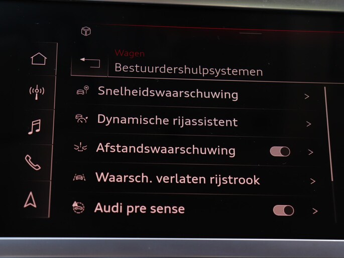Het personaliseren van jouw cockpitinterface is mogelijk met het digitale dashboard in deze auto. Adaptive cruise control is een comfortabele en veilige optie. Het systeem reguleert de snelheid en houdt automatisch afstand tot jouw voorligger. Hoe is het met de banden, de accu en andere onderdelen? Connected Services maakt het inzichtelijk, 24/7 via de app. Nooit meer de weg zoeken en ontspannen arriveren bij jouw reisdoel. Met het navigatiesysteem met harde schijf zit jij veilig en ontspannen in de auto. De auto is ook uitgevoerd met electronic climate control. Deze Audi is voorzien van lederen sportstuur, DAB ontvangst, parkeersensoren achter, regensensor en centrale deurvergrendeling met afstandsbediening.