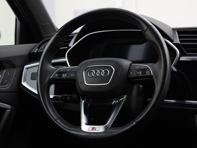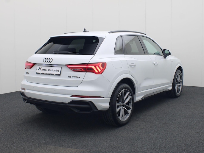 Een toonbeeld van Duitse kwaliteit in techniek, comfort en rijprestaties. Dat is deze Audi Q3. De liefhebbers hebben het al gezien: de sportieve, stoere S-Line styling! Deze Audi Q3 is vanwege de hybride motor een echte slimmerd. Want u rijdt zowel op brandstof als elektrisch. En dat scheelt in de kosten! 's Winters op pad gaan kan een behoorlijke uitdaging zijn. Daarom is deze Audi Q3 voorzien van weldadige verwarmbare voorstoelen. Comfortabel zitten, ook als de rit onstuimig is? Dat kan met de sportstoelen. Met een druk op de knop gaat de elektrische achterklep open. Ook is de auto voorzien van: 19 inch lichtmetalen velgen, Full LED koplampen, halflederen bekleding, warmtewerend glas, instelbaar onderstel en in delen neerklapbare achterbank.