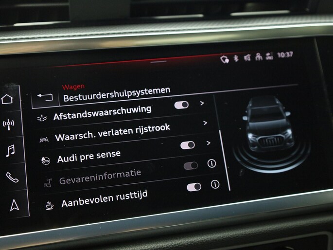 Deze auto is voorzien van innovatieve systemen die u onderweg begeleiden en beschermen. Belangrijk voor uw veiligheid en die van uw passagiers is de verkeersbord-detectie in deze auto. Het Lane-keeping systeem garandeert dat u zich niet onverhoeds buiten de lijnen van de rijstrook begeeft. Forward collision warning waarschuwt bij een dreigende aanrijding en vermindert de gevolgen van een ongeval. Bovenop deze veiligheidsfeatures heeft deze Audi bovendien dodehoekdetectie, hill hold functie, frontale botsbescherming en bandenspanningcontrolesysteem.