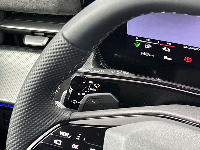 - Driespaaks lederen sportstuur, afgevlakt aan de boven- en onderzijde, multifunctioneel, met stuurpaddels, verwarmbaar (1XT)