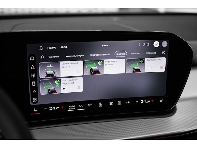 - Adaptive cruise control met predictieve regeling (alleen in combinatie met verkeersbordherkenning d.m.v. een camera)
