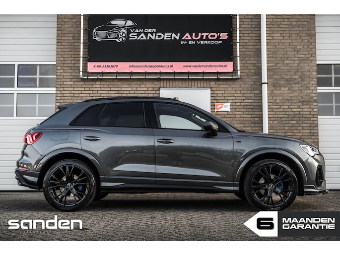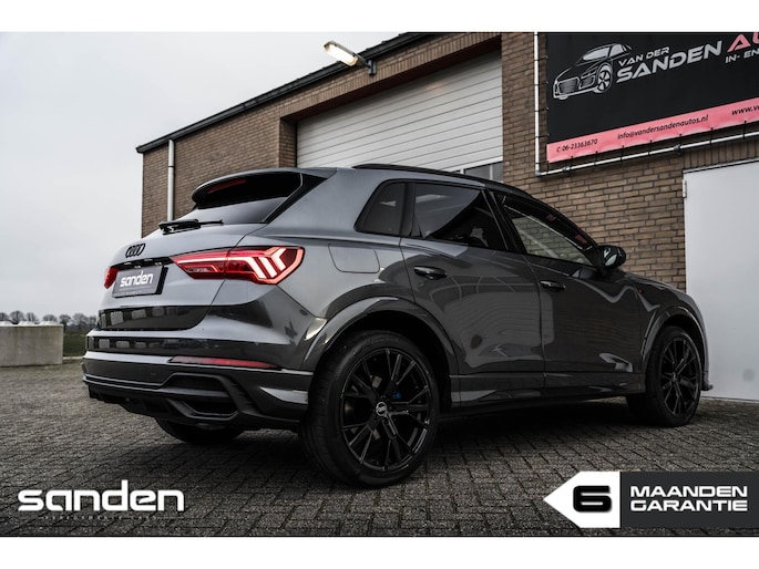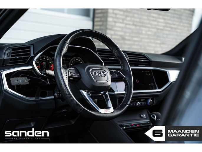 Audi Q3 35 TFSI S edition | S-Tronic Automaat | Panoramadak | S line | 20" velgen | LED | Adaptive Cruise Control | Sonos Audio | Maxton Design frontlip | Black optik | Sportstoelen | Achteruitrijcamera | CarPlay | Climate Control | Virtual Cockpit | Parkeersensoren voor/achter | Honingraat grill | Dashcam