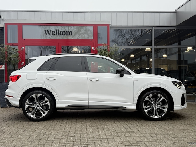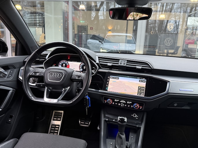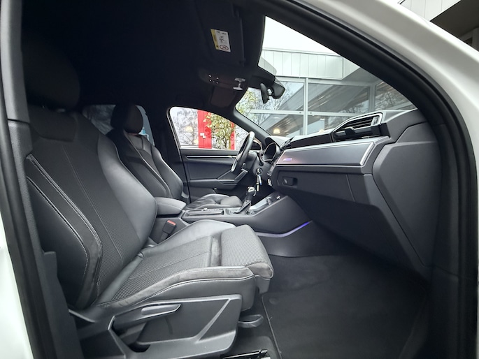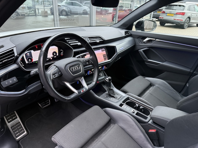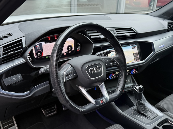 Schitterende Audi Q3 met 35 tfsi motor en af fabriek S-Line in- en exterieur pakket en o.a. voorzien van van: Digitale airconditioning, cruise control, matrix led lampen, parkeersensoren, full map navigatiesysteem, privacy glas, afgeplat S-Line stuurwiel, 20 inch velgen, interieur verlichtingspakket in kleuren instelbaar, enz.. enz..