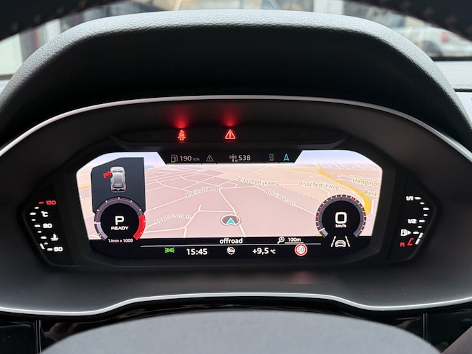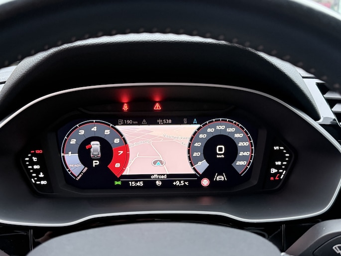 Zoals u mag verwachten van deze Audi Q3 is hij uitgerust met een reeks aan actieve veiligheidssystemen. In het instrumentarium kunt u bovendien de verkeersborden zien die u onderweg tegenkomt. Zo helpt deze Audi u om veiliger te rijden. Forward collision warning waarschuwt voor een kop-staart botsing. In deze Audi vinden we verder een hill hold functie, autonoom remsysteem en bandenspanningcontrolesysteem.