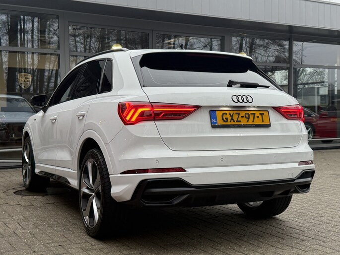 Hij zorgt voor een ontspannen rijervaring, deze Audi Q3. Het is een auto uit 2020, op de teller staat een kilometerstand van 68646. Ten opzichte van het standaard model onderscheidt deze Audi zich met sportieve S-Line styling. De aandrijving komt voor rekening van een benzinemotor en een automatische transmissie. 's Winters op pad gaan kan een behoorlijke uitdaging zijn. Daarom is deze Audi Q3 voorzien van weldadige verwarmbare voorstoelen. U blijft ook in de scherpe bochten goed ondersteund door de fraaie sportstoelen. De achterklep opent automatisch met een druk op de knop. Handig als u met volle handen staat. De slimme koplampen gebruiken de allernieuwste matrix LED-verlichting. Altijd maximaal zicht, nooit verblinding bij de tegenligger. Tot de voorzieningen van deze auto behoren 20 inch lichtmetalen velgen, sportonderstel, halflederen bekleding, warmtewerend glas, in delen neerklapbare achterbank en LED-achterlichten.