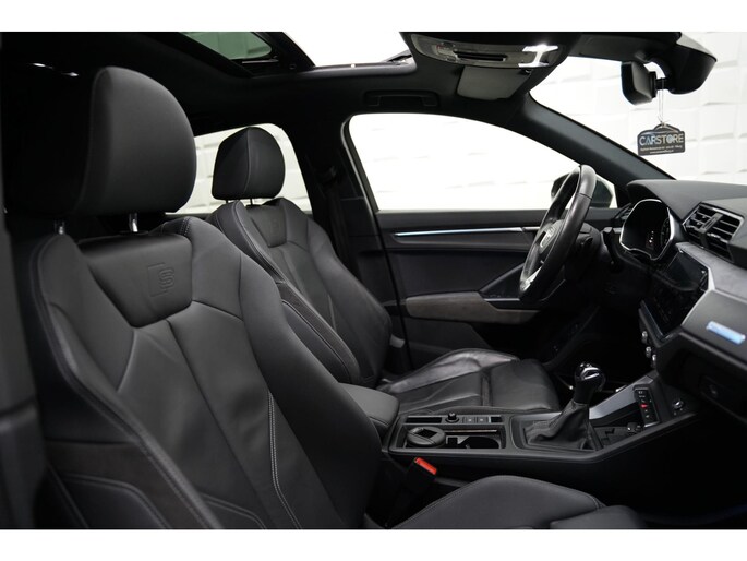 Combineer de functionaliteit van een gezinsauto met de prestaties van een sportwagen, en je krijgt deze sportieve Audi Q3 Sportback. Een beetje meer aandacht en een stoere uitstraling? Daar zorgt de S-Line styling voor. De luxe van het lederen interieur, gecombineerd met het gemak van het elektrisch bediende glazen panorama dak en de superhandige elektrisch bedienbare achterklep zorgen voor een wel heel complete uitvoering. Dankzij de stoelverwarming heeft u in deze auto nooit meer last van een koude rug of koude benen. De slimme koplampen gebruiken de allernieuwste matrix LED-verlichting. Altijd maximaal zicht, nooit verblinding bij de tegenligger. Bij de uitrusting van deze auto horen onder meer 20 inch lichtmetalen velgen, sportonderstel, halflederen bekleding, warmtewerend glas, in delen neerklapbare achterbank en LED-achterlichten.