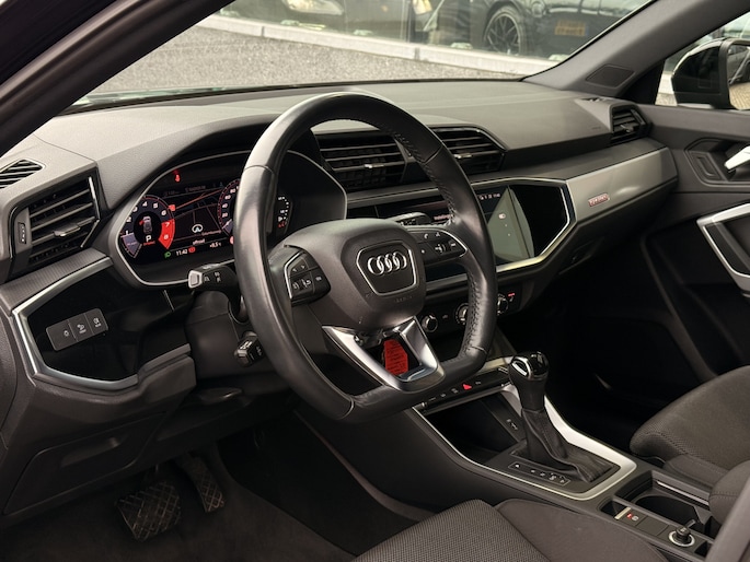 De Audi Q3 combineert comfort met een uitstekende wegligging en dynamische rijkwaliteiten. Een hoogtepunt uit de specificatielijst van deze auto is de sportieve S-Line styling. De krachtige motor geeft deze Audi uitstekende prestaties. Verwarmde stoelen maken het interieur behaaglijk op winterse dagen. Met matrix LED-verlichting rijdt u eigenlijk altijd met groot licht, dus maximaal zicht. Toch is verblinden er niet bij, want het systeem regelt de verlichting zo dat tegenliggers er geen last van hebben. Verder is de Audi uitgerust met: 19 inch lichtmetalen velgen, sportonderstel, adaptief dempingsysteem, warmtewerend glas, in delen neerklapbare achterbank en LED-achterlichten.