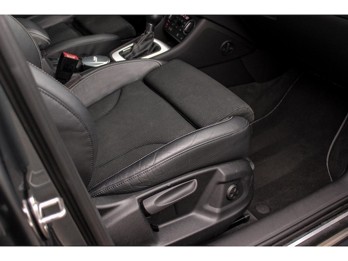 Van binnen een zwart half lederen sport interieur met zwarte hemelbekleding en een aluminium dashboard inleg. Achterin een deelbare achterbank met ISO-fix aansluitingen.