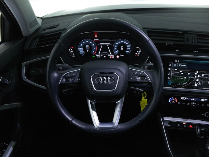 Begeef je op de geweldige rit door de digitale wereld van mobiliteit waar alles wat jij wenst voor comfort en veiligheid, wordt geprojecteerd op het digitale dashboard. Kinderfietsje niet gezien bij het inparkeren? Dat gebeurt je nooit meer. Daar zorgt de achteruitrijcamera wel voor! Deze Audi Q3 maakt het je makkelijk. Vandaar ook de elektrisch inklapbare trekhaak. Dankzij Connected Services heb je overal en altijd je dashboard op zak. Alle belangrijke functies zijn te checken via de app. Je kunt tijdens de rit jouw ogen steeds op de weg houden, want het audiosysteem en het navigatiesysteem met harde schijf kun je bedienen vanaf het stuur. Wat je ook in deze auto kunt vinden zijn electronic climate control, lederen sportstuur, regensensor, cruise control en centrale deurvergrendeling met afstandsbediening.