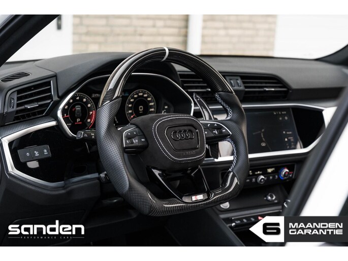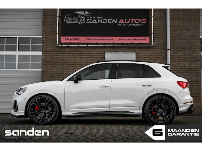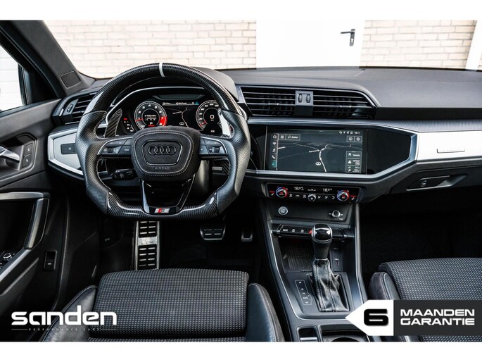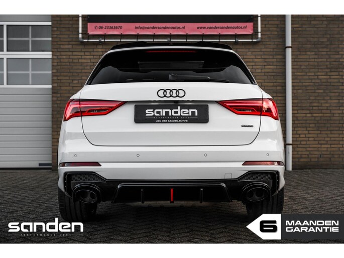 Audi Q3 40 TFSI quattro Pro Line S | 335 pk | VAG Techniek Stage 1 | S line | Panoramadak | Maxton Design | RSQ3 look diffuser | Custom Carbon stuurwiel | Stoelverwarming | LED | Adaptive Cruise Control | Achteruitrijcamera | Parkeersensoren voor + achter | 21" inch zwart | Elektrische achterklep | Uitlaat met klep | Keyless | Virtual Cockpit | Sfeerverlichting | CarPlay