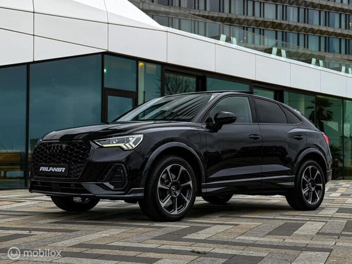 Audi Q3 45 TFSI e S line met Black Style. Zijn krachtige plug-in hybride aandrijflijn zorgt voor soepel en dynamisch rijden, terwijl het sportieve S line-design en de zwarte accenten hem een extra krachtige uitstraling geven.