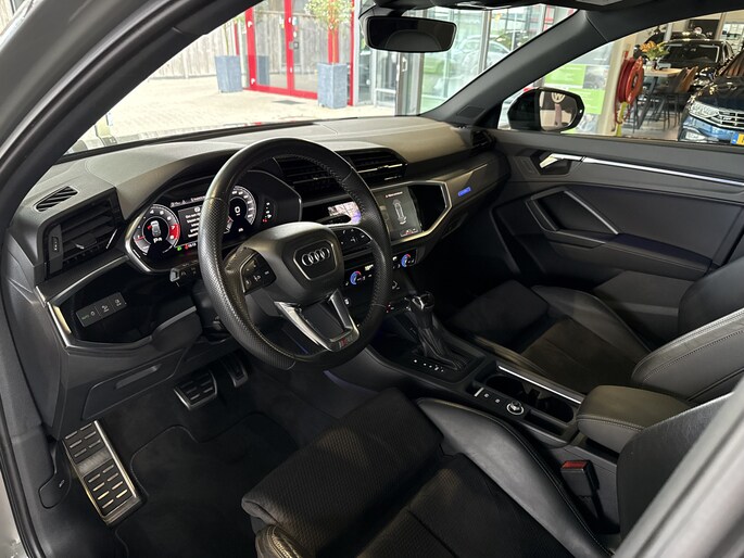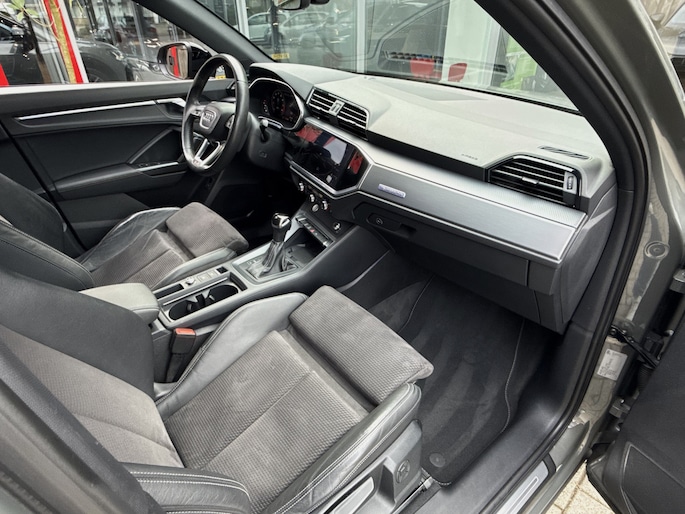 Schiiterende, perfect onderhouden Audi Q3 met 2.0 tfsi 190pk motor en quattro aandrijving !! o.a. voorzien van S-Line in- en exterieur pakket, full map navigatie, elektrisch bedienbaar panoramadak, elektrisch verstelbare bestuurdersstoel, stoelverwarming, carplay, elektrisch bedienbaar panoramadak, elektrisch bedienbare achterklep, wegklapbare trekhaak, leder/alcantara bekleding, virtual dashbord, dode hoek assisent, 20 inch velgen, privacy glas, optiek pakket, inteieur verlichtingspakket in kleuren instelbaar, enz.. enz..
