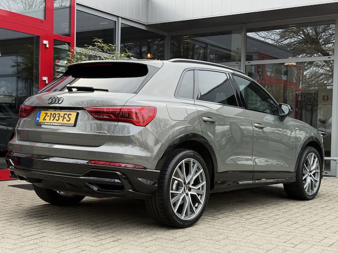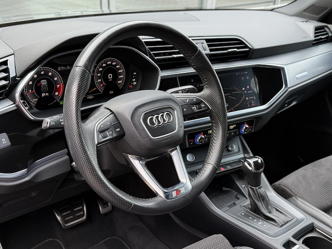 Dit is niet zomaar een Audi Q3. De hoge prestaties van de motor, het strak afgestelde onderstel en de uitgekiende verhoudingen van de transmissie staan garant voor bergen rijplezier. Deze auto heeft 128072 kilometer op de teller staan, het bouwjaar is 2019. Een beetje meer aandacht en een stoere uitstraling? Daar zorgt de S-Line styling voor. In deze auto vindt u een benzinemotor en een automatische transmissie. Ga samen met uw bijrijder lekker zitten in de verwarmbare voorstoelen. Comfortabel zitten, ook als de rit onstuimig is? Dat kan met de sportstoelen. Het interieur lijkt groter en ruimtelijker dankzij het elektrisch bedienbare glazen panoramadak. De achterklep opent automatisch met een druk op de knop. Handig als u met volle handen staat. De geavanceerde matrix LED-verlichting in de koplampen levert maximaal helder zicht en past zich subtiel aan zodra er een tegenligger komt. Zonder lichtkwaliteitsverlies! In deze auto profiteert u onder andere ook van: 20 inch lichtmetalen velgen, sportonderstel, halflederen bekleding, warmtewerend glas, in delen neerklapbare achterbank en LED-achterlichten.