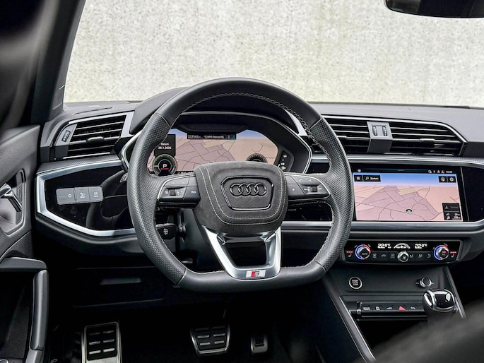NIEUW MODEL | MODEL 2023|*LET OP: 1e kentekenregistratie 21-07-2022. In bijzonder nette staat verkerende Audi Exclusive uitgevoerde Audi Q3 Sportback 45 TFSIe 245pk S-Tronic Competition S Edition S-Line! Afkomstig van de 1é eigenaar, uiteraard volledig Audi dealeronderhouden en met een zeer interessante, gecontroleerde tellerstand van slechts 45.807 kilometer. Deze prachtige Audi Exclusive uitgevoerde SUV kent een zeer royale fabrieksconfiguratie; denk aan de fantastische Audi Exclusive Siam Beige Metallic lak gecombineerd met het Zwart optiekpakket, de Zwart Valcona Leder/Alcantara S-line Sportstoelen incl. Grijze stiksels, Audi Exclusive Alcantara airbag + Geperforeerd afgevlakt lederen 3-spaaks S-line Sportstuurwiel tevens beide voorzien van Grijze stiksels icm de Carbon look interieur details, Sonos 3D Surround Soundsystem incl. subwoofer, Ambiance verlichting premium, Apple CarPlay / Android Auto, HD Matrix Dynamische LED koplampen, Keyless Entry & Keyless GO, Camera/ Rear View, Audi RSQ3 Design Black diffuser + Zwarte uitlaat sierstukken, maar ook de Voorklimatisering fabrieksaf incl. Standkachel en uiteraard ken het Panoramisch glazen schuif-/kanteldak niet ontbreken evenals de Audi Virtual Cockpit, kortom Uniek! Deze Audi Q3 RS Edtion biedt geweldige prestaties met z'n 180kw/245pk en 400Nm koppel sterke 1.4TFSI turbomotor, gekoppeld aan de Audi S-Tronic aandrijving een trekvermogen van 1400kg . Het betreft een BTW-auto, dus voor zowel de zakelijke als particuliere klant interessant. De getoonde 21inch Black Performance velgenset met 4x Vredestein Quatrac Pro Allseason banden is tegen geringe meerprijs van €2195,- te verkrijgen.