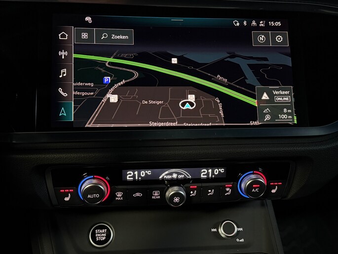 Met het digitale dashboard heeft u essentiële info in beeld. Altijd, overal. Comfortabel en veilig achteruitrijden gaat gemakkelijker dan ooit met behulp van de parkeerhulp met achteruitrijcamera. Adaptive cruise control is een comfortabele en veilige optie. Het systeem reguleert de snelheid en houdt automatisch afstand tot uw voorligger. Pech oplossen en zelfs voorkomen? Gaat eenvoudig. Via Connected Services heeft u alle data in de hand, gewoon op de smartphone! In deze auto klinkt uw favoriete muziek nog beter dankzij het high performance audiosysteem. Ook is de Audi uitgerust met: navigatiesysteem met harde schijf, electronic climate control, lederen sportstuur, DAB ontvangst, regensensor en keyless entry.