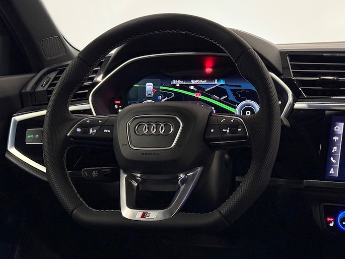 Bij het ontwerpen van de Audi Q3 Sportback stonden uw comfort en uw veiligheid centraal. Het sportieve uiterlijk is meegeleverd in de vorm van de S-Line styling. De aandrijving van deze Audi wordt verzorgd door een viercilinder motor en een automatische transmissie. De auto is voorzien van leren bekleding - een fraaie en sfeerverhogende extra. Bestuurder en bijrijder krijgen een warm welkom: deze Audi Q3 Sportback is voorzien van verwarmbare voorstoelen. U blijft ook in de scherpe bochten goed ondersteund door de fraaie sportstoelen. Laat de zon maar schijnen door het elektrisch bediende glazen panoramadak. Een handige voorziening op deze auto is de elektrische achterklep die u op afstand kunt openen. In deze auto profiteert u onder andere ook van: 20 inch lichtmetalen velgen, sportonderstel, warmtewerend glas, adaptieve verlichting, in delen neerklapbare achterbank en LED-achterlichten.