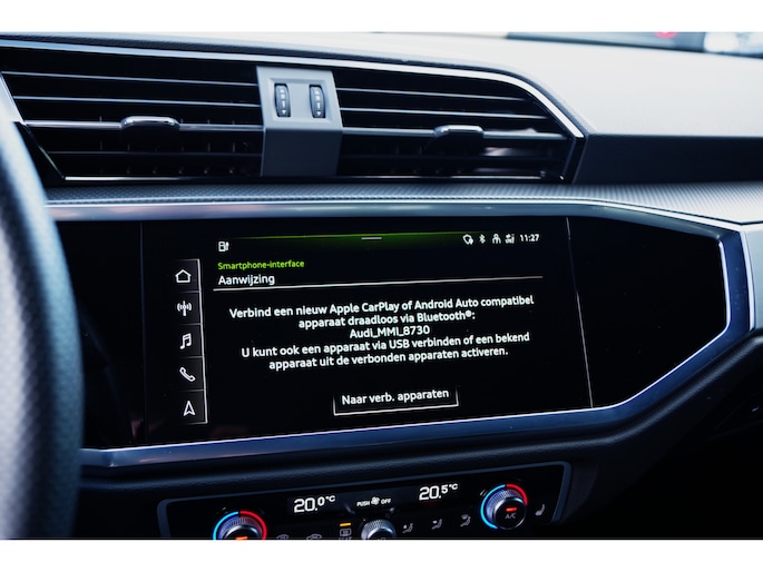 Kijk voor een uitgebreide fotoreportage op onze site. Dit betreft een zeer nette en goed uitgeruste Audi Q3 Sportback met talrijke mooie opties zoals: panoramadak, sfeerverlichting, rondomzicht camera, etc. Alle historie is aanwezig. 48.950,- euro betreft een scherpe, rijklare basisprijs. De prijs inclusief nieuwe APK, onderhoudsbeurt indien nodig en twaalf maanden BOVAG garantie komt uit op 50.200,- euro. Inruil is geen enkel probleem. Heeft u interesse en wilt u ons bezoeken? Om ervoor te zorgen dat we voldoende tijd voor u hebben, vragen we u om een afspraak te maken voordat u langskomt. Dit helpt ons om u zo goed mogelijk van dienst te zijn.De koffie staat klaar. De Audi wordt standaard geleverd op de originele 18 inch lichtmetalen velgen, indien u ervoor kiest de auto te kopen met de getoonde 20 inch lichtmetalen velgen en banden kost dit 1.950,- euro extra. **Wij doen ons uiterste best om de informatie van onze advertenties zo correct en actueel mogelijk weer te geven. Aan bovenstaande informatie kunnen echter geen rechten worden ontleend. Controleer daarom samen met ons de aanwezige opties en accessoires op de auto van uw keuze.**