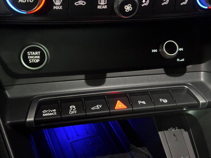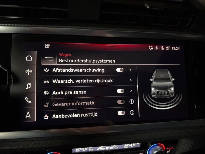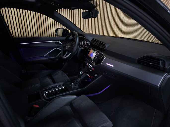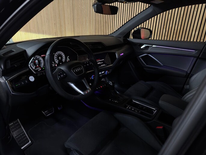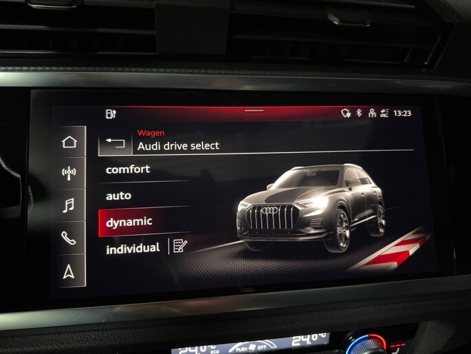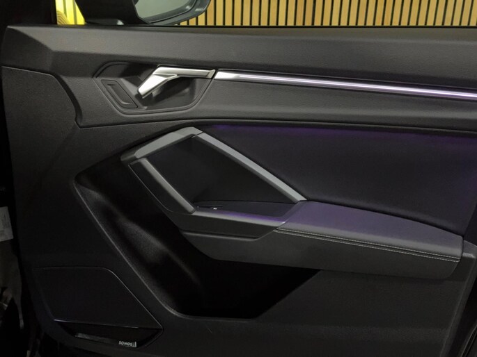 Op het gebied van comfort en rijhulpsystemen is deze Q3 uitgerust met cruisecontrol, adaptieve rijassistent, lane departure warning inclusief emergency assist, verkeersbordherkenning, grootlichtassistent, parkeersensoren vóór en achter (APS Plus), parkeerstuurassistent, hill hold assist, Audi Drive Select, progressive besturing en Audi pre sense basic (beschermingssysteem voor inzittenden).