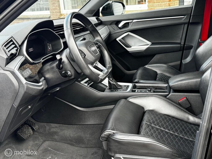 AUDI Q3 45 TFSI E S LINE AUTOMAAT Voorzien van FULL-OPTIONS! o.a. Volleder luxe, Panoramadak, Drive select, Navigatie, Achteruitrijcamera, Parkeersensoren, Soundsystem, Armsteun, Lichtmetalen velgen, Elektrisch pakket, Stoelverwarming, led, Zwarte hemelbekleding, Etc