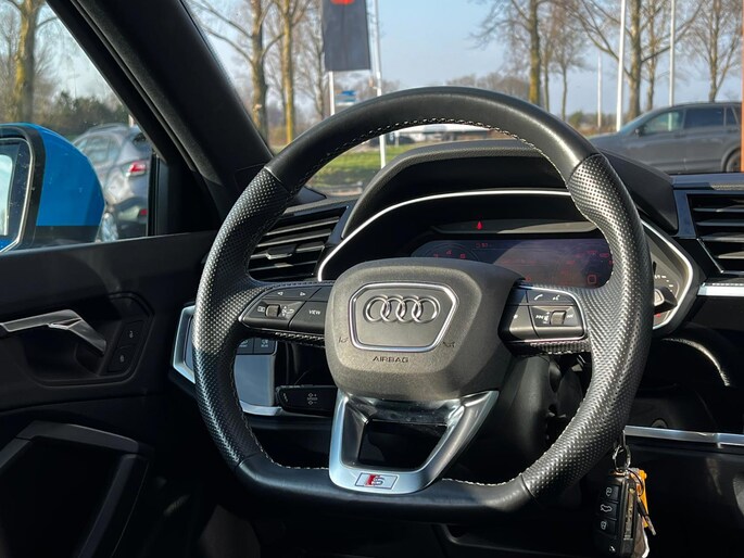 U merkt het aan de look and feel van deze auto: dit is kwaliteit. De Audi Q3 Sportback is ontworpen volgens de Duitse opvattingen van kwaliteit en degelijkheid, maar biedt tegelijk een hoge mate van comfort en uitstekende rijkwaliteiten. De begrippen exclusief en sportief zijn allebei van toepassing op de markante S-Line styling. De aandrijving van deze Audi wordt verzorgd door een viercilinder motor en een automatische transmissie. Verwen uzelf met het lederen interieur in deze auto. 's Winters komen de verwarmbare voorstoelen heerlijk van pas. Ziet er goed uit, die sportstoelen. Maar waar het om gaat, is de solide zit onder alle omstandigheden. De bagageruimte is toegankelijk via een comfortverhogende elektrische achterklep. Bij de rijke uitrusting horen ook 18 inch lichtmetalen velgen, LED koplampen, halflederen bekleding, warmtewerend glas, zwarte hemelbekleding en in delen neerklapbare achterbank.