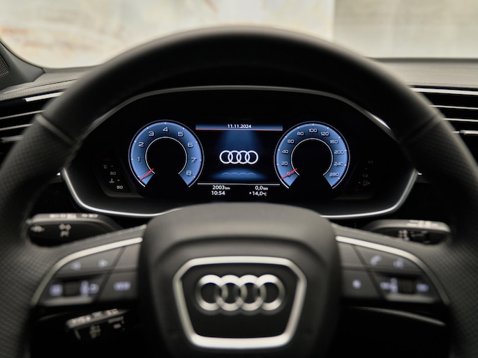 Deze Q3 Sportback is uitgerust met geavanceerde technologieën zoals de Audi virtual cockpit plus (9S9) en het MMI navigatie plus systeem met MMI touch (7UG). De adaptieve cruise control (8T8) en lane keeping assist (6I3) verhogen de veiligheid, terwijl verkeersbordherkenning (QR9) bestuurders helpt de verkeersregels nauwkeurig op te volgen. De auto biedt diverse rijassistentiesystemen zoals de achteruitrijcamera (KA2) en parkeerhulp plus (7X2). Voor extra rijcomfort is de auto voorzien van progressieve besturing (1N7) en de Hill hold assist (UG1).